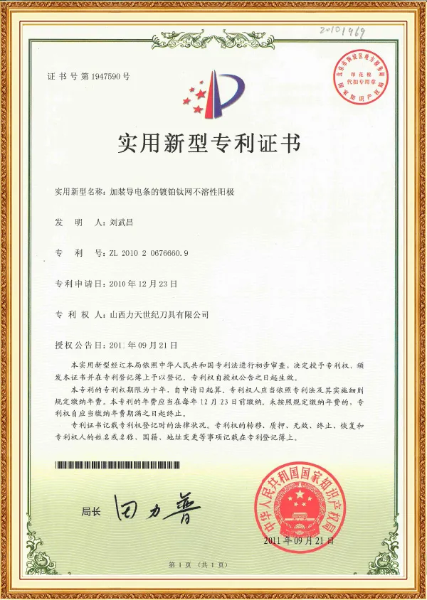 2010: Regarded as "Hi-Tech Enterprise" by State Scientific and Technological Commission;